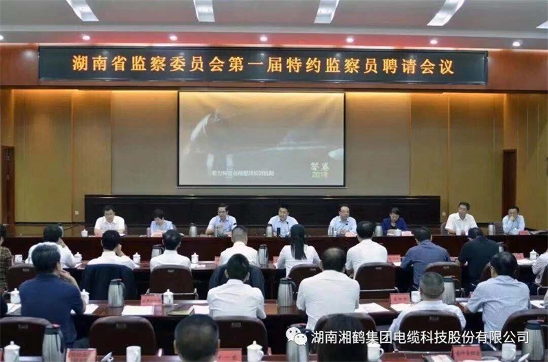 2019年9月19日,湖南省监察委员会在长沙召开第一届特约监察员聘请会议,聘请27名特约监察员。省委常委、省纪委书记、省监委主任傅奎为特约监察员颁发聘书并讲话。湖南省电线电缆行业协会常务副会长、湖南湘鹤集团电缆科技股份有限公司董事长王茂卿先生被湖南省监察委员会聘请为第一届特约监察员。